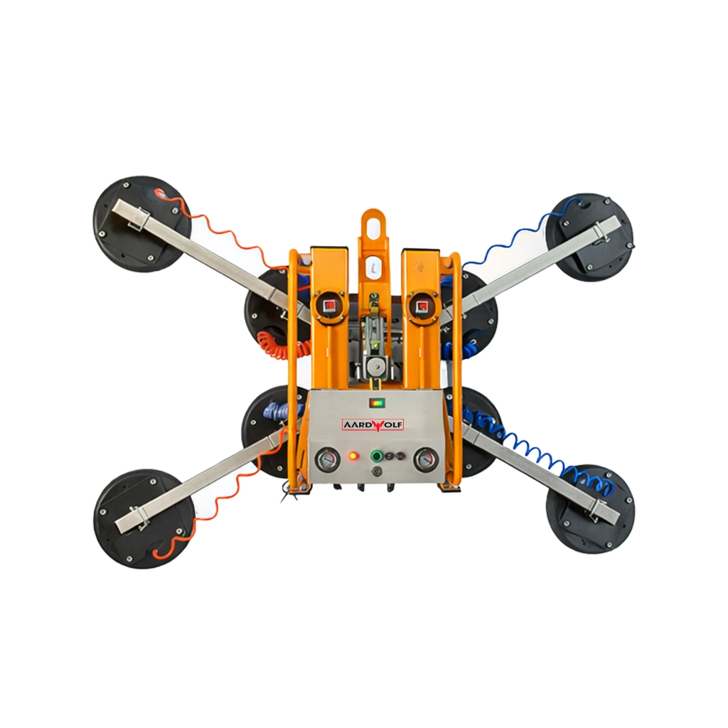 The Vacuum GlassGrip is designed for insulated glass units and large-format glass panels, utilizing six Ø290 mm suction pads and a dual vacuum system to enhance stability and safety. The unit is fully battery-powered and offers an optional remote control, making it well suited for façade installation and applications requiring high positioning accuracy.