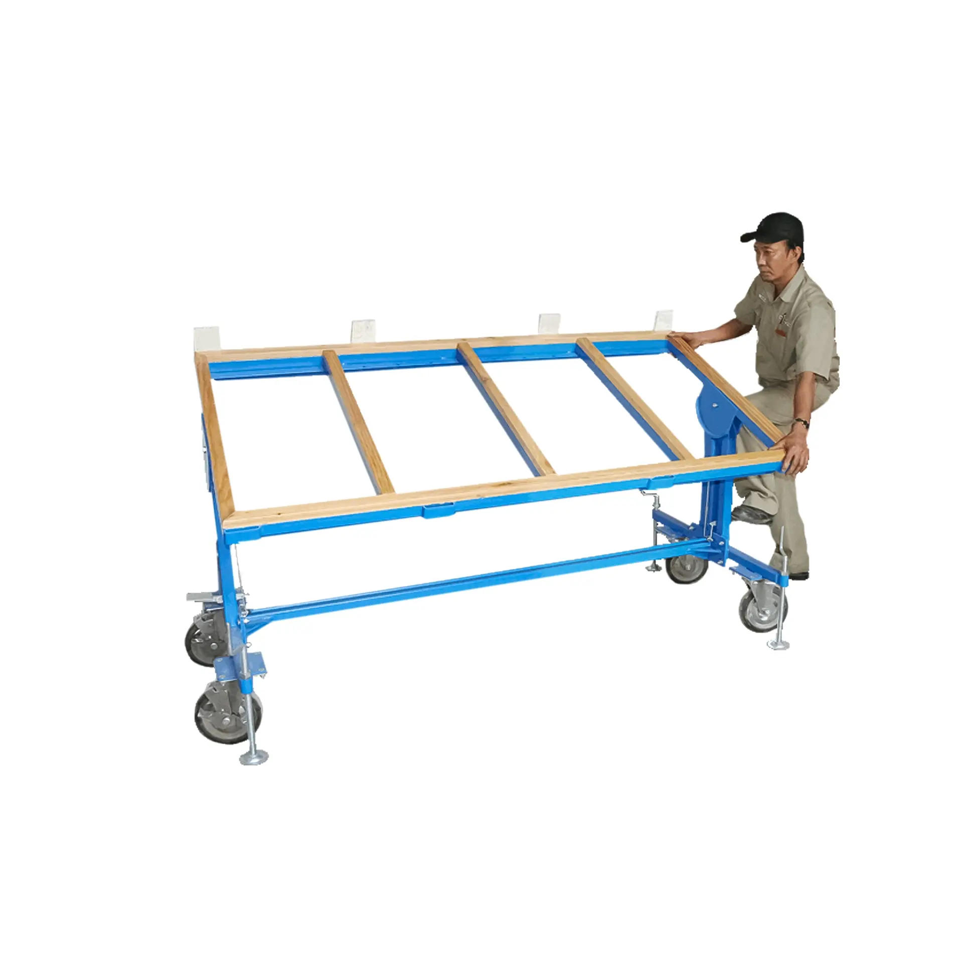 A versatile dual-function fabrication table is ideal when cutting, grinding, or polishing an already cut-to-size piece. Serves as a work table in the horizontal position and as a slab dolly in the vertical position. The tabletop is adjustable for different sloping positions.